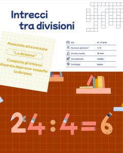 Il gioco associato a questa canzone è “Intrecci tra divisioni”, che consiste nel completare le caselle degli intrecci di parole dopo aver eseguito le divisioni.